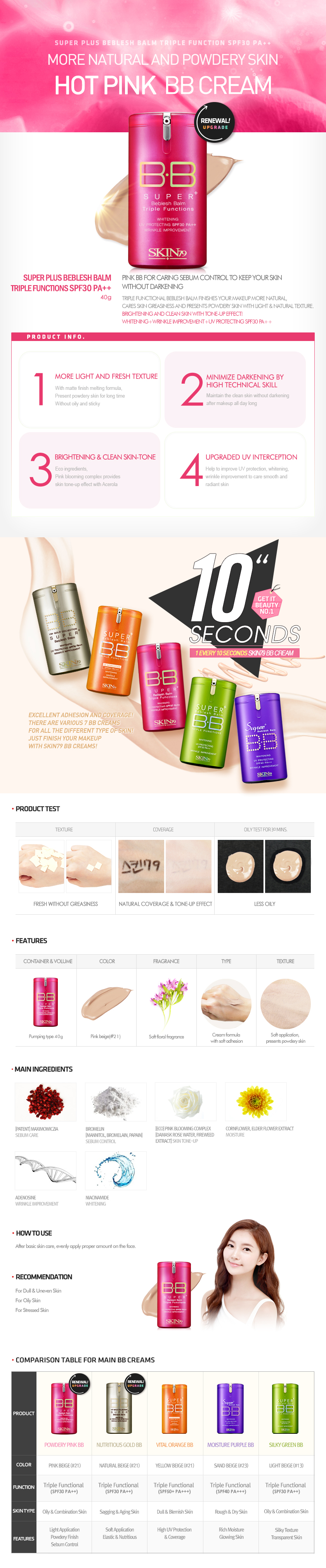 يباع من هذا المنتج علبة كل 5 ثواني حول العالم. كريم بي بي BB لثلاث وظائف، علاج للندوب و إخفائها. كما أنه يحتوي على موني الأدينوسين والأربوتين ذوي التأثير الفعال لتبييض البشرة ومعالجة التجاعيد لجعل البشرة أكثر إشراقًا ومرونة. ويحمي البشرة من التعرض للأشعة فوق البنفسجية (أ) و(ب) في الوقت ذاته. SPF30 وبذلك يحمي البشرة التي تتعرض للشمس بشكل مستمر. ويعد مكون الاوسموبرو من المكونات الجديدة التي تُستخرج من عباد الشمس ونخالة الأرز ومستخرجات اللبلاب التي تحمي البشرة من العديد من الحالات الضارة. كما أن المكونات المركبة من النباتات المفيدة لترطيب البشرة ونعومتها يجعلها رطبة دائمًا وصحية. لهذا المنتج وظيفة رائعة من خلال تشكيل أساس الماكياج (فاونديشن). ويمكن لهذا المنتج تعديل لون البشرة المختلف وغير المتجانس بشكل طبيعي. كما أن هذا المسحوق رائع في الالتصاق بالبشرة والتحكم بالزهم. ويعد الشكل (W\S) جيد لتجانس البشرة ويعمل على تفتيح البشرة وجعلها ناعمة وجافة طوال اليوم دون جعلها لزجة.